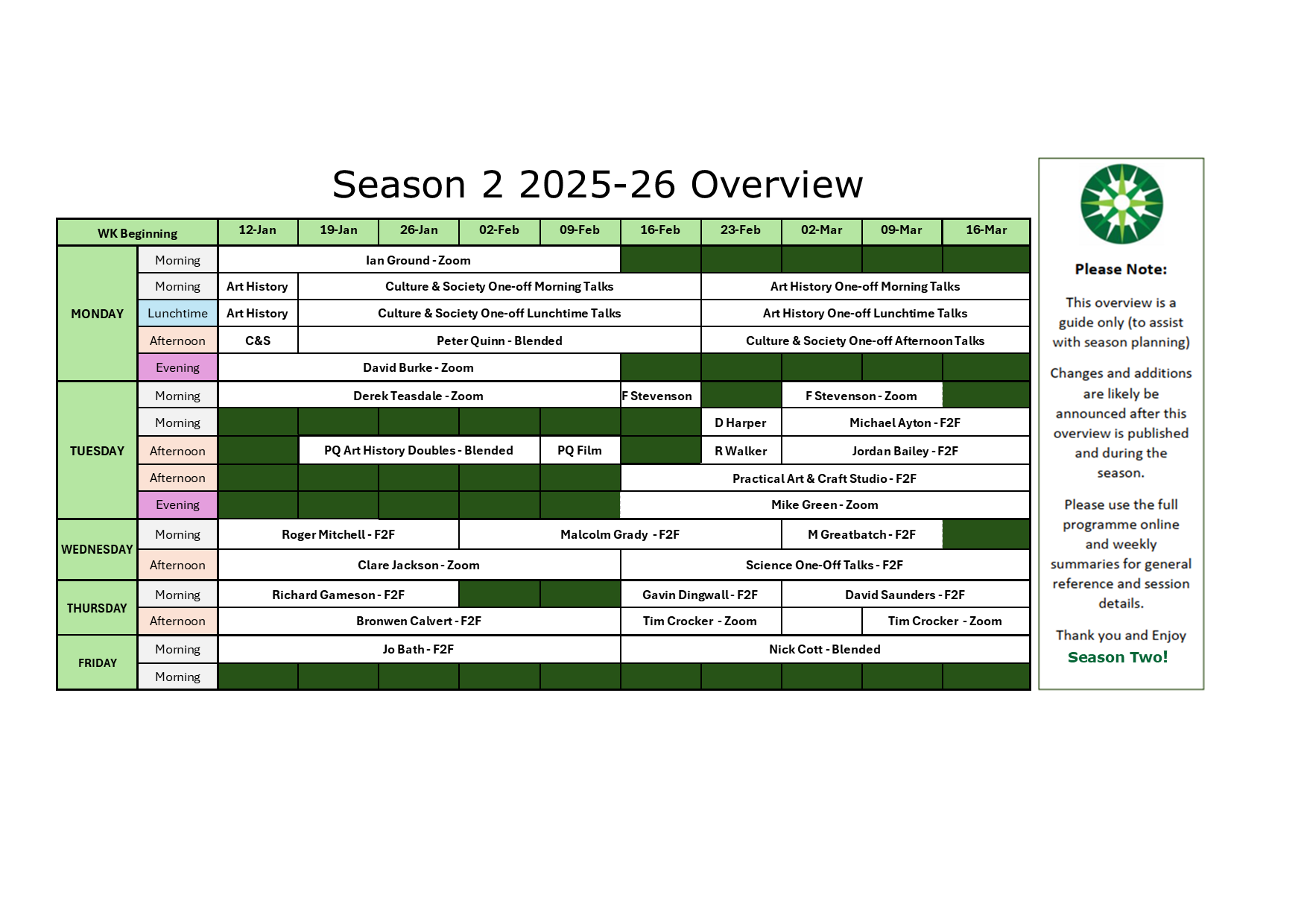 Our current season started on Monday 12th January 2026 - view our new programme below!